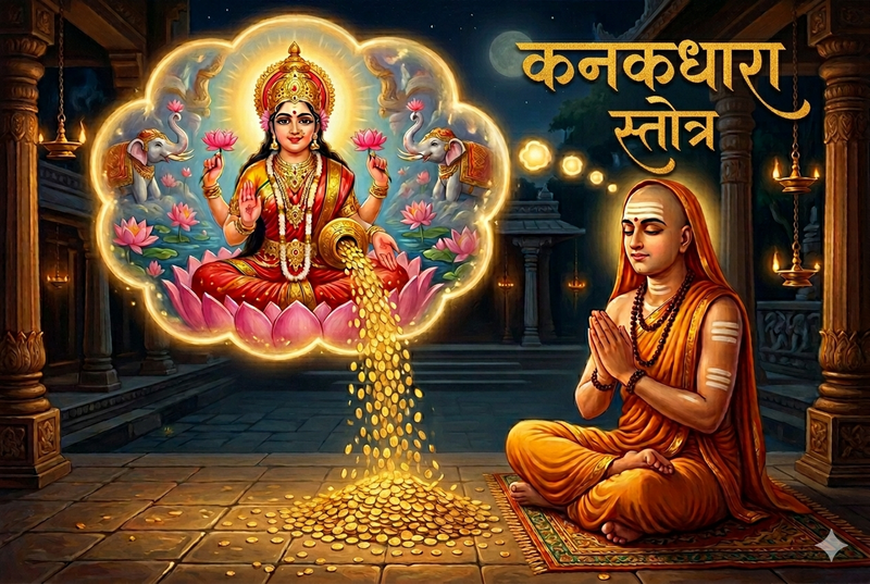 कनकधारा स्तोत्र, जिसका शीर्षक शाब्दिक रूप से “स्वर्ण की धारा” के रूप में अनूदित होता है, अद्भुत आदिशंकराचार्य द्वारा रचित अत्यंत प्रिय और मूलभूत भक्ति-स्तोत्रों में से एक है। यह न केवल उनकी काव्य-प्रतिभा और सनातन धर्म की दार्शनिक गहनता को प्रदर्शित करता है, अपितु सर्वप्रथम अनुग्रह अर्थात् दैवी कृपा की रूपांतरणकारी शक्ति को प्रकट करता है।